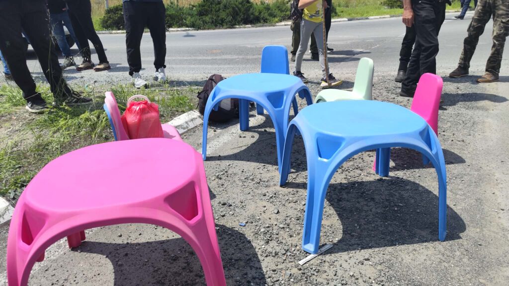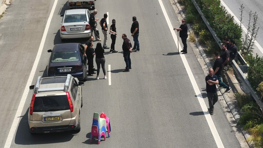 Εκτός από τον κυκλικό κόμβο της Ριζοελιάς, έκλεισε εντελώς και ο δρόμος κάτω από τον κυκλικό κόμβο που οδηγεί προς την Αγία Νάπα. Οι διαμαρτυρόμενοι παράταξαν οχήματα, ενώ επιστράτευσαν καρέκλες, ενδεικτικό των προθέσεων τους να παραμείνουν για ώρες στο σημείο.