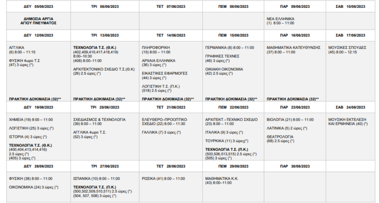Στις 9 Ιουνίου 2023 με το μάθημα των Νέων Ελληνικών, αρχίζουν οι Παγκύπριες εξετάσεις και ολοκληρώνονται στις 29 Ιουνίου.
