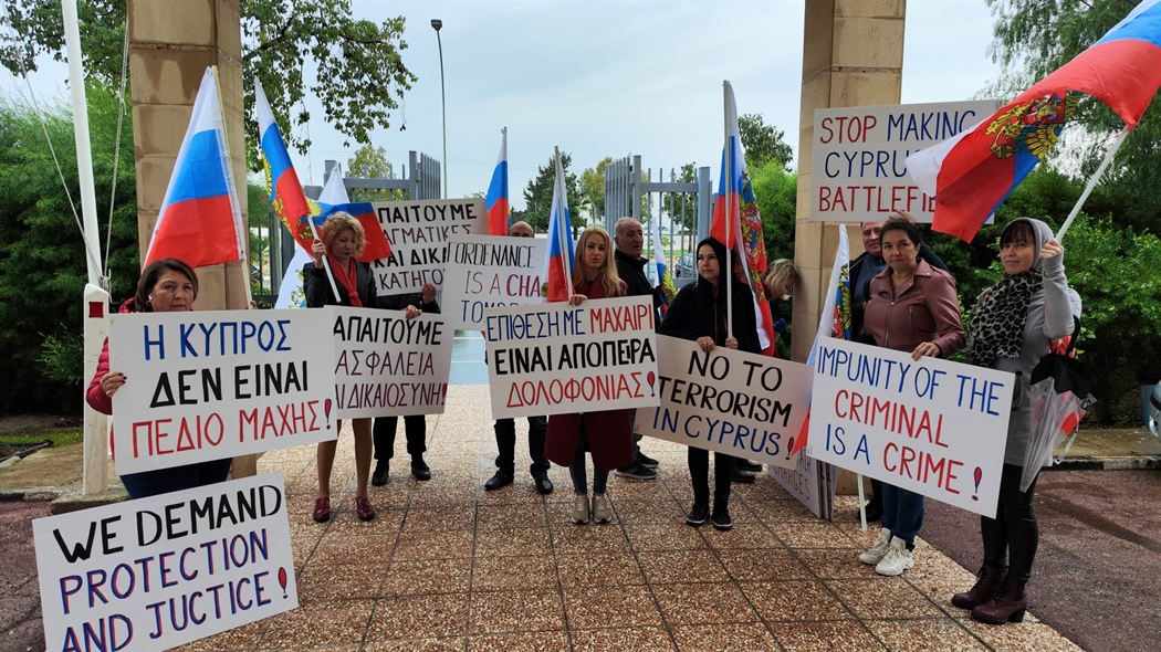 Ρώσοι κρατώντας σημαίες της χώρας τους καθώς και πανό, πραγματοποιούν εκδήλωση διαμαρτυρίας στο Δικαστήριο Λάρνακας, με αφορμή την έναρξη της ακροαματικής διαδικασίας της δικής 55χρονης...