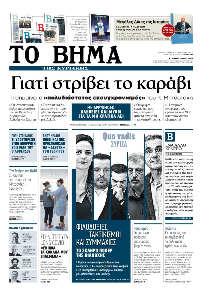 Διαβάσετε στο ΒΗΜΑ που κυκλοφορεί σήμερα μαζί με τον «Φ»: