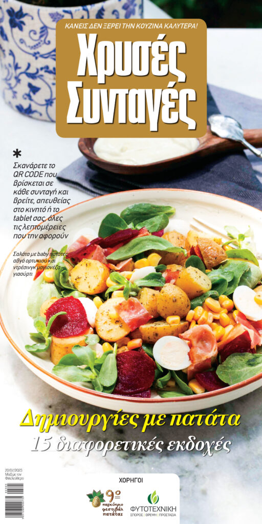 Στο νέο τεύχος των Χρυσών Συνταγών που κυκλοφορεί αυτό το Σάββατο 22 Ιουλίου μαζί με τον Φιλελεύθερο, σας παρουσιάζουμε 15 συνταγές με την πατάτα σε διαφορετικές εκδοχές, με αφορμή το 9ο Παγκύπριο Φεστιβάλ Πατάτας που θα πραγματοποιηθεί στις 29 Ιουλίου στο Κοινοτικό Γήπεδο Αυγόρου.