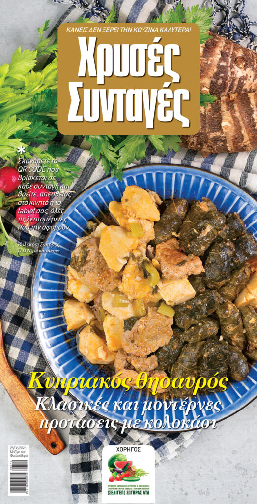 Στο νέο τεύχος των Χρυσών Συνταγών που κυκλοφορεί αυτό το Σάββατο 26 Αυγούστου μαζί με τον Φιλελεύθερο, σας παρουσιάζουμε παραδοσιακές αλλά και γκουρμέ προτάσεις με Κολοκάσι Σωτήρας Π.Ο.Π., ένα αυθεντικό ταξίδι στην παραδοσιακή γαστρονομία.