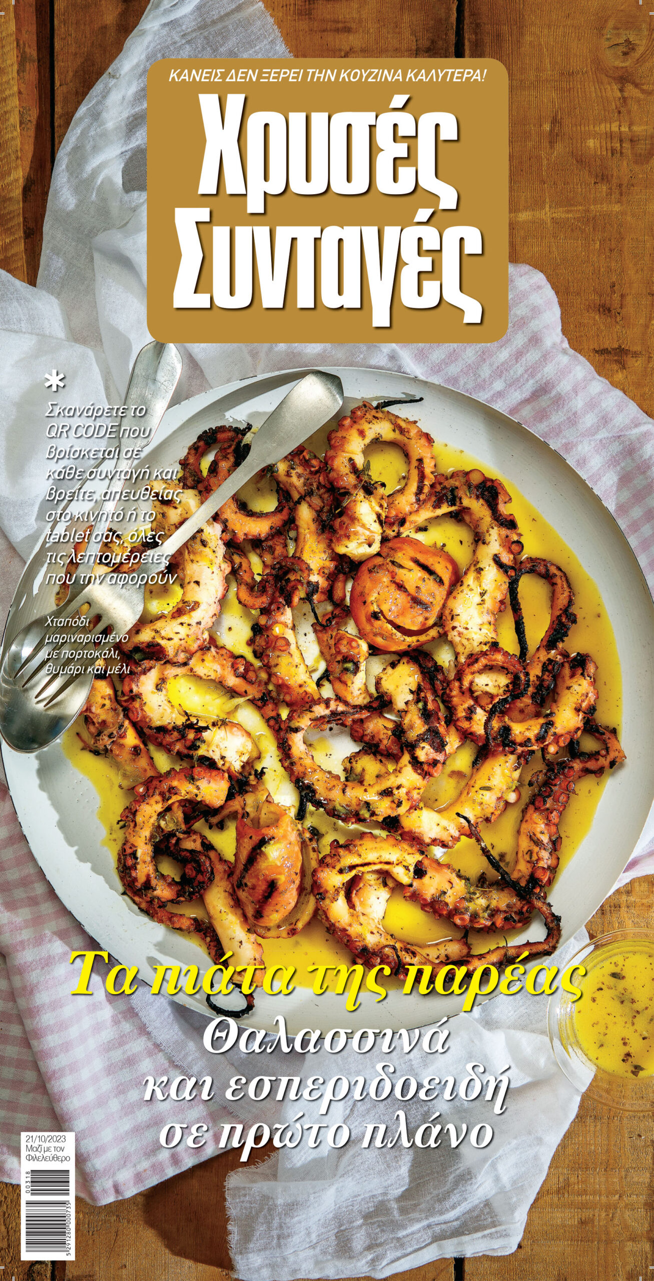 Στο νέο τεύχος των Χρυσών Συνταγών που κυκλοφορεί αυτό το Σάββατο 21 Οκτωβρίου μαζί με τον Φιλελεύθερο, σας παρουσιάζουμε 15 προτάσεις με θαλασσινά σε συνδυασμό με ευχάριστες νότες από εσπεριδοειδή.