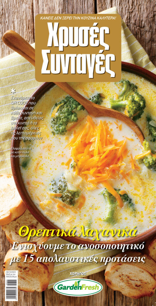 Στο νέο τεύχος των Χρυσών Συνταγών που κυκλοφορεί αυτό το Σάββατο 9 Δεκεμβρίου μαζί με τον Φιλελεύθερο, ενισχύουμε το ανοσοποιητικό μας με 15 απολαυστικές προτάσεις με λαχανικά.