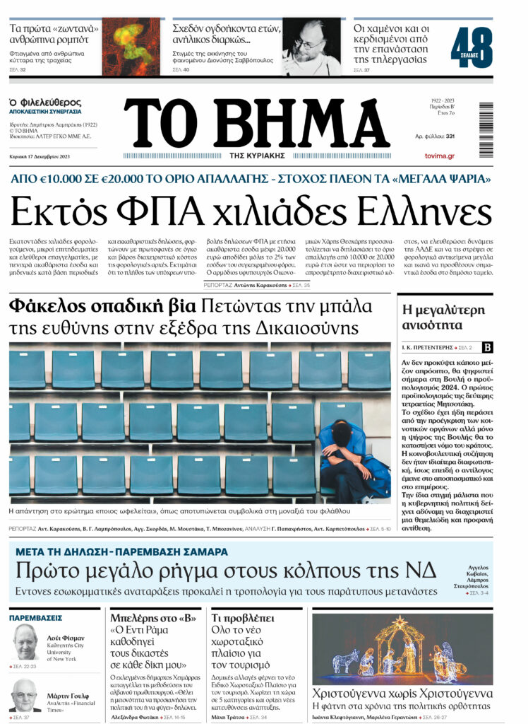 Διαβάστε στο Βήμα της Κυριακής που κυκλοφορεί μαζί με τον «Φ»: