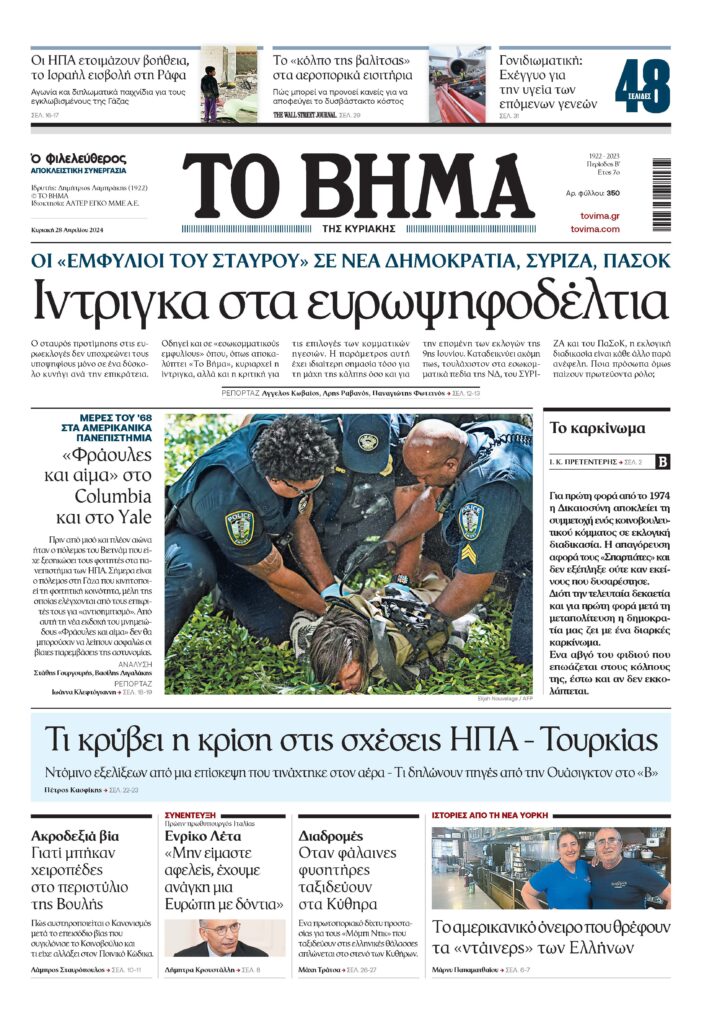Μέρες του ’68 στα αμερικανικά πανεπιστήμια. Φουντώνουν απ’ άκρου εις άκρον των ΗΠΑ οι φοιτητικές κινητοποιήσεις διαμαρτυρίας για τη συνεχιζόμενη εισβολή του ισραηλινού στρατού στη Γάζα. Αστυνομικές δυνάμεις, ελικόπτερα και drones γύρω από το Columbia.