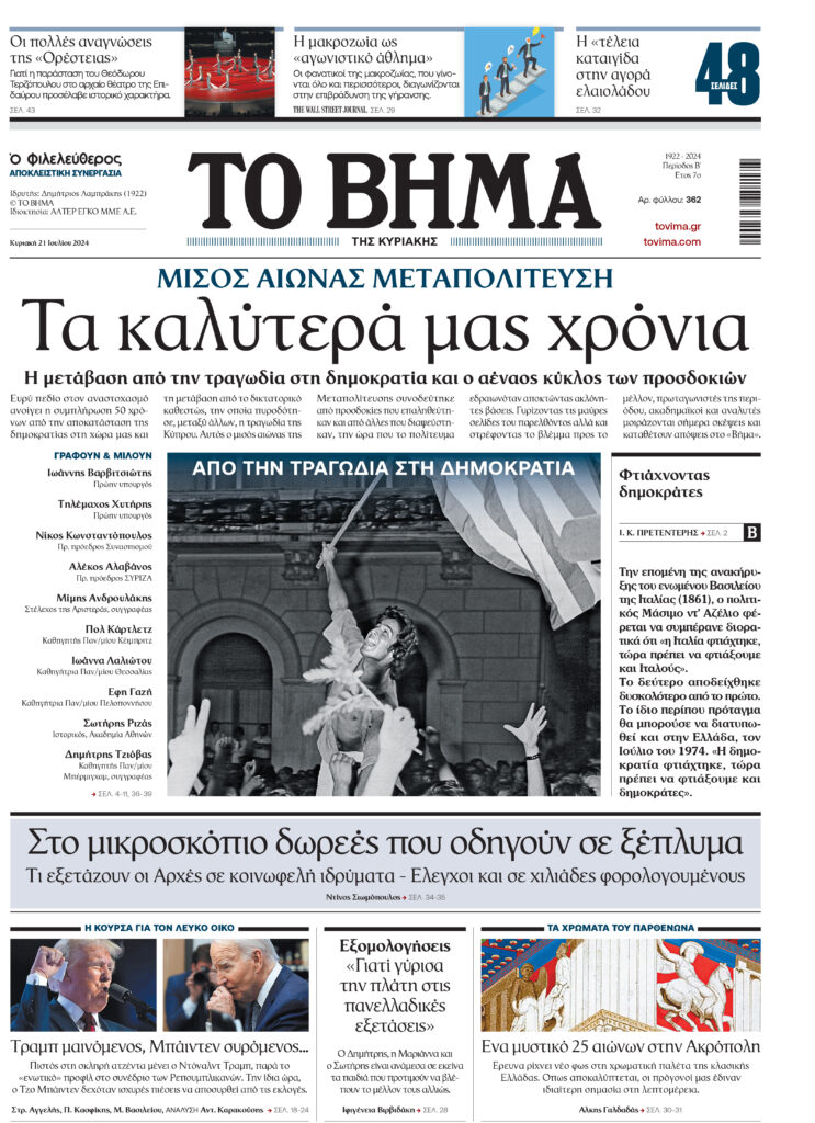 Διαβάστε στο Βήμα της Κυριακής που κυκλοφορεί μαζί με τον «Φ»: