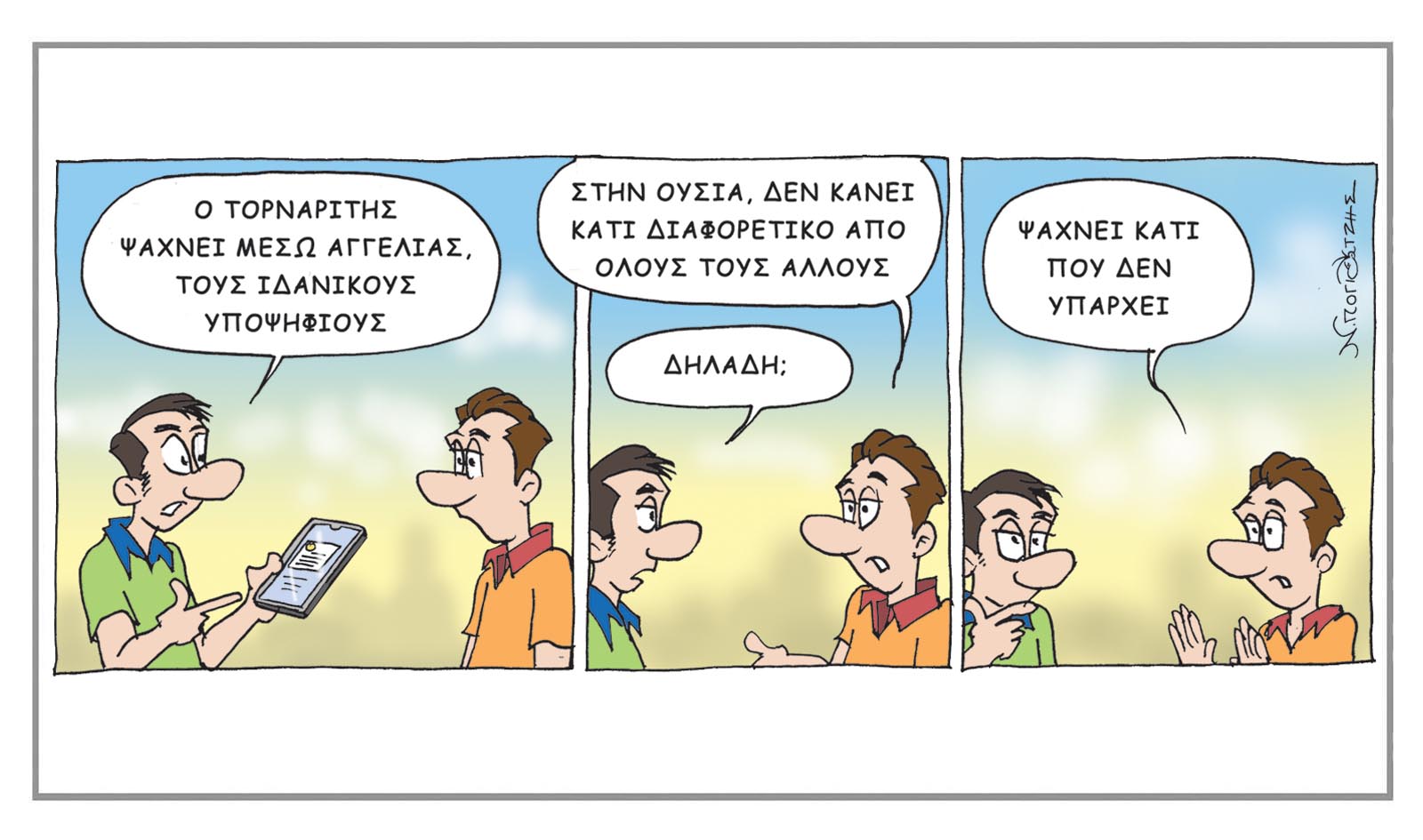 array(1) { [0]=> int(540) } MEDIA #Σκίτσο Το σκίτσο του Νίκου Πογιατζή newsroom 14 Οκτωβρίου 2025, 6:05 A- A+ Πάντα με χιουμοριστική διάθεση, ο Νίκος Πογιατζής «καταγράφει» τα τρέχοντα γεγονότα στην Κύπρο και τον Κόσμο. ΣΧΟΛΙΑ Προβολή σχολίων ΣΧΕΤΙΚΑ ΝΕΑ Καλημέρα από τον Πιν! 14 Οκτωβρίου, 2025 Καλημέρα από τον Πιν! 13 Οκτωβρίου, 2025 Το σκίτσο του Νίκου Πογιατζή 13 Οκτωβρίου, 2025 BRAND STORIES Βασιλική Αδαμίδου/Διευθύντρια Εταιρικών Υποθέσεων & Βιωσιμότητας της LIDL Κύπρου: Επιχειρησιακή υπευθυνότητα με κοινωνική συνείδηση Πριν 24 λεπτά Μελίνα Ράφτη/GENERAL MANAGER OF KORANTINA HOMES: Το πιο ισχυρό εργαλείο marketing είναι τα έργα μας 13 Οκτωβρίου, 2025 Nicosia Kids Festival: Μια γιορτή γεμάτη φαντασία, διασκέδαση και προσφορά 13 Οκτωβρίου, 2025