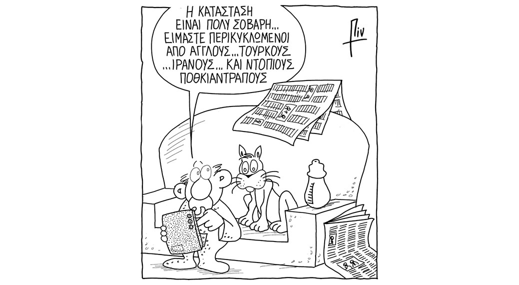 array(1) { [0]=> int(540) } MEDIA #Σκίτσο Καλημέρα από τον Πιν! newsroom Πριν 1 ώρα A- A+ Ο καυστικός Πιν σχολιάζει με το πενάκι του την επικαιρότητα! ΣΧΟΛΙΑ Προβολή σχολίων ΣΧΕΤΙΚΑ ΝΕΑ Το σκίτσο του Νίκου Πογιατζή 3 Μαρτίου, 2026 Καλημέρα από τον Πιν! 2 Μαρτίου, 2026 Το σκίτσο του Νίκου Πογιατζή 2 Μαρτίου, 2026 BRAND STORIES Η Shell βλέπει τεράστια ευκαιρία για το πετρέλαιο της Βραζιλίας μετά την σύγκρουση ΗΠΑ με Ιράν 3 Μαρτίου, 2026 Αυτές είναι όλες οι πτήσεις που ακυρώθηκαν – Τι αποφάσισε κάθε αεροπορική εταιρεία – Τι γίνεται στα κυπριακά αεροδρόμια 3 Μαρτίου, 2026 Μετά την επίθεση, μήνυμα Airbnb σε ιδιοκτήτες στην Κύπρο (εικόνα) 3 Μαρτίου, 2026