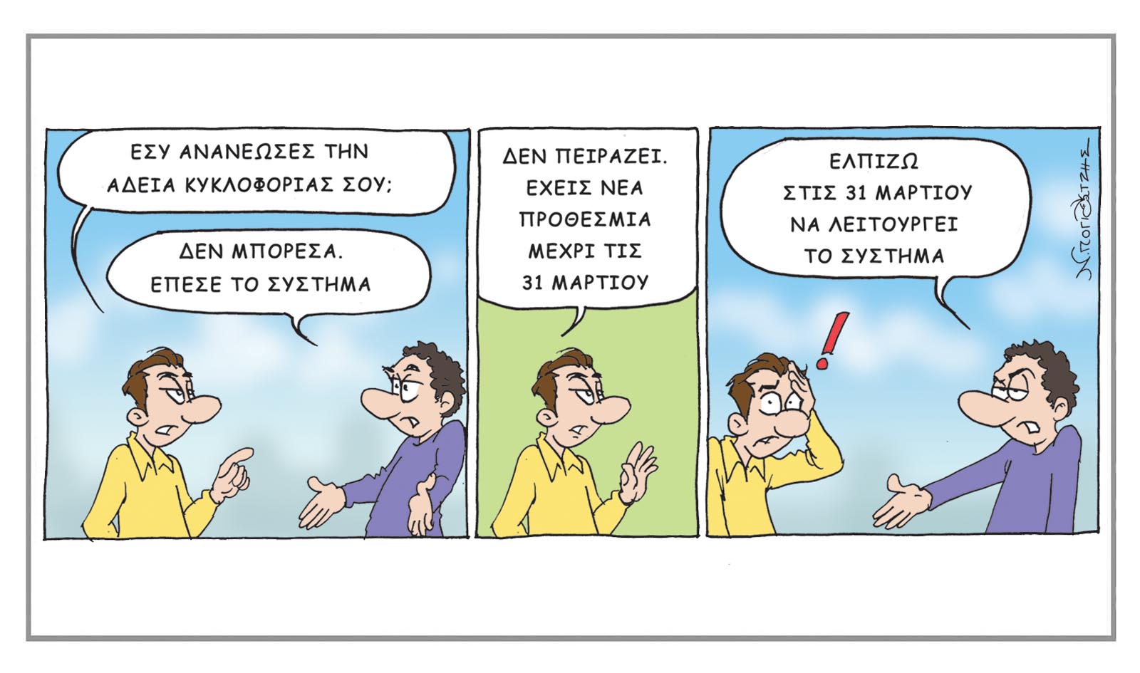 array(1) { [0]=> int(540) } MEDIA #Σκίτσο Το σκίτσο του Νίκου Πογιατζή newsroom Πριν 1 ώρα A- A+ Πάντα με χιουμοριστική διάθεση, ο Νίκος Πογιατζής «καταγράφει» τα τρέχοντα γεγονότα στην Κύπρο και τον Κόσμο. Εγγραφή στο Newsletter ΣΧΟΛΙΑ Προβολή σχολίων ΣΧΕΤΙΚΑ ΝΕΑ Καλημέρα από τον Πιν! 16 Μαρτίου, 2026 Το σκίτσο του Νίκου Πογιατζή 15 Μαρτίου, 2026 Καλημέρα από τον Πιν! 15 Μαρτίου, 2026 BRAND STORIES Εκπαίδευση Πρώτων Βοηθειών: Ένα μάθημα ζωής για τα παιδιά των εργαζομένων της Eurobank 16 Μαρτίου, 2026 Ανανέωση και ενίσχυση της συνεργασίας Ομίλου Λανίτη – Cyprus Seeds για την εμπορευματοποίηση της καινοτομίας 16 Μαρτίου, 2026 Παγκόσμια Εβδομάδα Χρήματος: Δράσεις της Επιτροπής Κεφαλαιαγοράς για τη χρηματοοικονομική παιδεία των νέων 16 Μαρτίου, 2026
