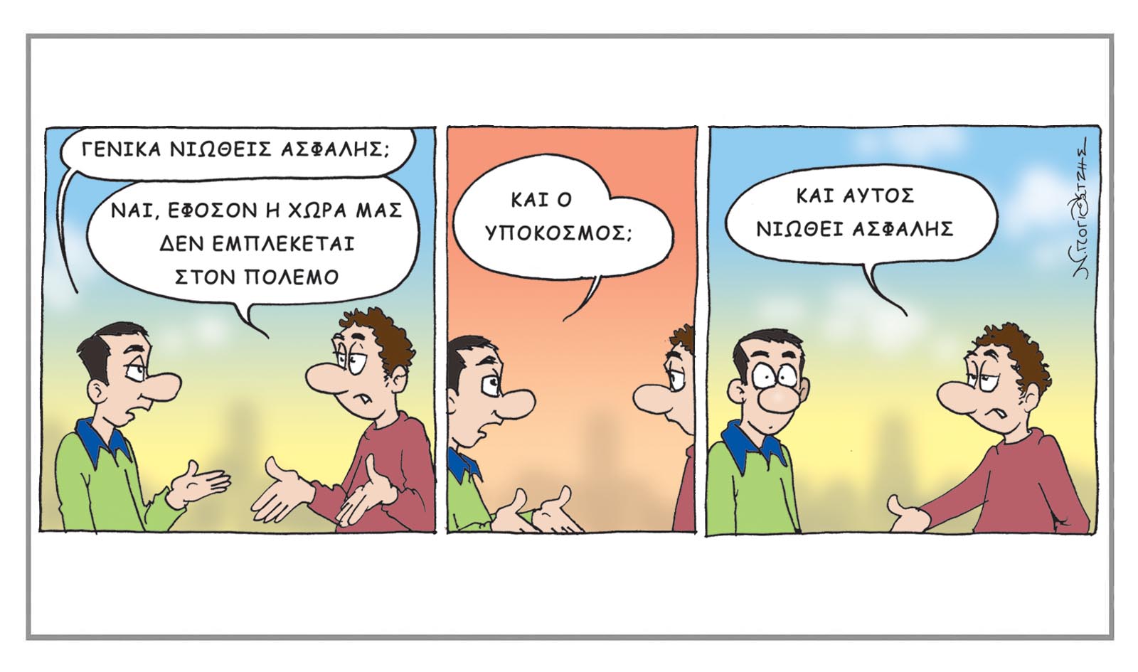 array(1) { [0]=> int(540) } MEDIA #Σκίτσο Το σκίτσο του Νίκου Πογιατζή newsroom 27 Μαρτίου 2026, 6:05 A- A+ Πάντα με χιουμοριστική διάθεση, ο Νίκος Πογιατζής «καταγράφει» τα τρέχοντα γεγονότα στην Κύπρο και τον Κόσμο. Εγγραφή στο Newsletter ΣΧΟΛΙΑ Προβολή σχολίων ΣΧΕΤΙΚΑ ΝΕΑ Καλημέρα από τον Πιν! 27 Μαρτίου, 2026 Καλημέρα από τον Πιν! 25 Μαρτίου, 2026 Το σκίτσο του Νίκου Πογιατζή 25 Μαρτίου, 2026 BRAND STORIES ΟΕΒ: Σωστά τα μέτρα, αλλά χρειάζεται περισσότερη στήριξη στον τουρισμό 26 Μαρτίου, 2026 ΑΗΚ: Πρωταγωνιστεί στον ενεργειακό μετασχηματισμό της Κύπρου 26 Μαρτίου, 2026 Εντυπωσιακή παρουσία της Κύπρου στην έκθεση ΟΙΝΟΡΑΜΑ 2026 26 Μαρτίου, 2026