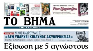 Τι θα διαβάσετε στο ΒΗΜΑ που κυκλοφορεί σήμερα μαζί με τον «Φ»: