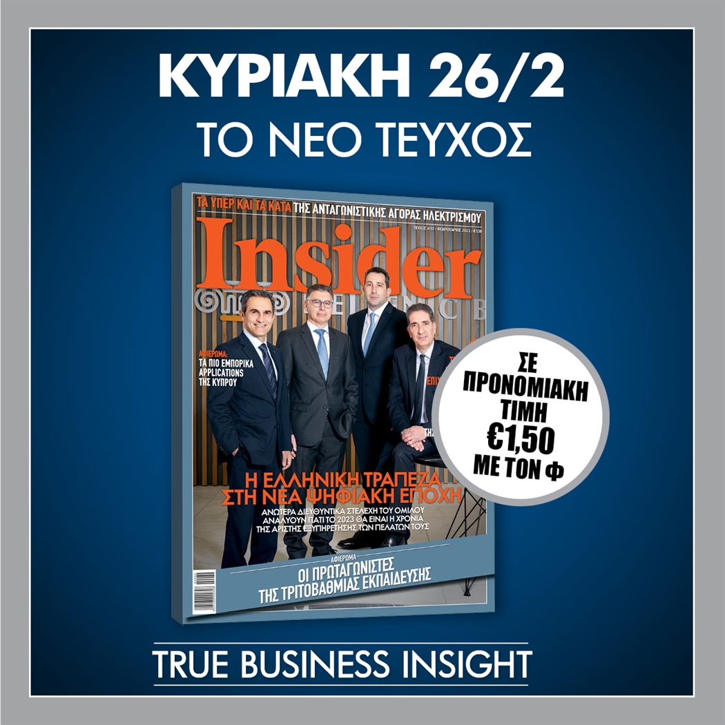 Μη χάσετε αυτή την Κυριακή μαζί με τον Φιλελεύθερο και Το Βήμα το κορυφαίο επιχειρηματικό περιοδικό Insider που κυκλοφορεί σε προνομιακή τιμή και διαβάστε: