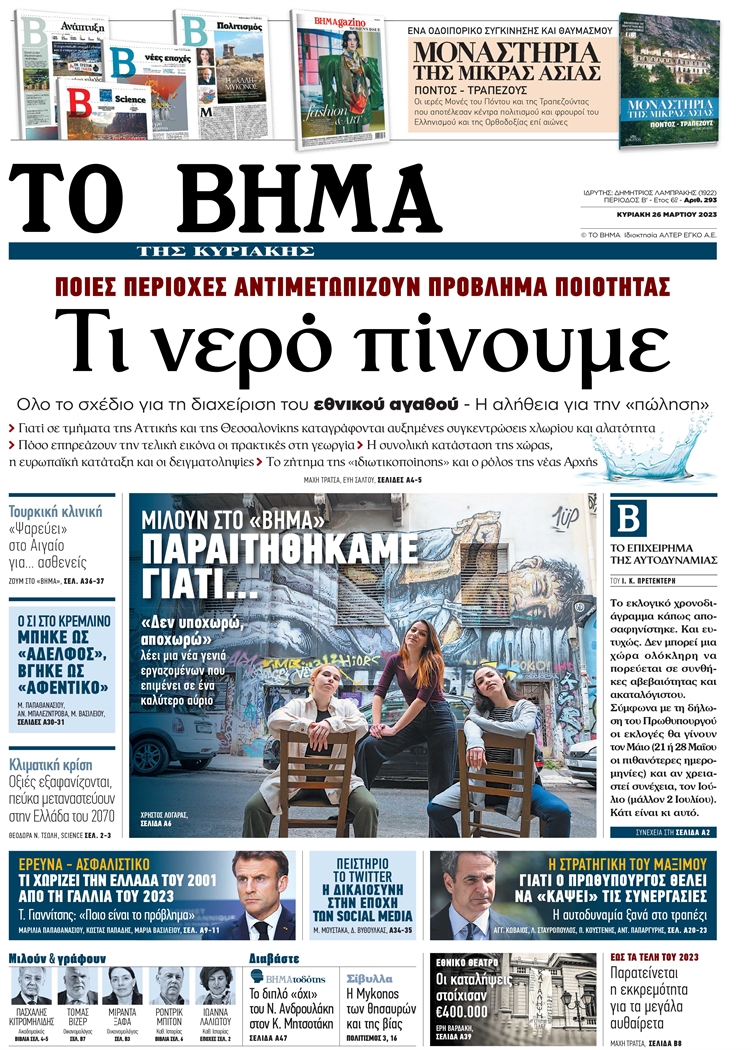 Τι θα διαβάσετε στο ΒΗΜΑ που κυκλοφορεί σήμερα Κυριακή μαζί με τον «Φ»: