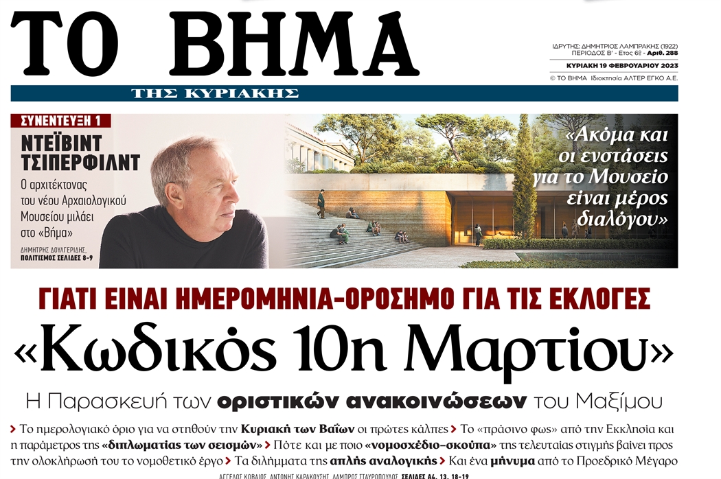 Τι θα διαβάσετε στο ΒΗΜΑ που κυκλοφορεί σήμερα Κυριακή μαζί με τον «Φ»: