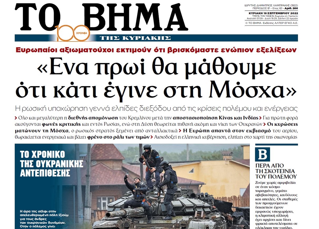 Τι θα διαβάσετε στο ΒΗΜΑ που κυκλοφορεί σήμερα Κυριακή μαζί με τον «Φ»: