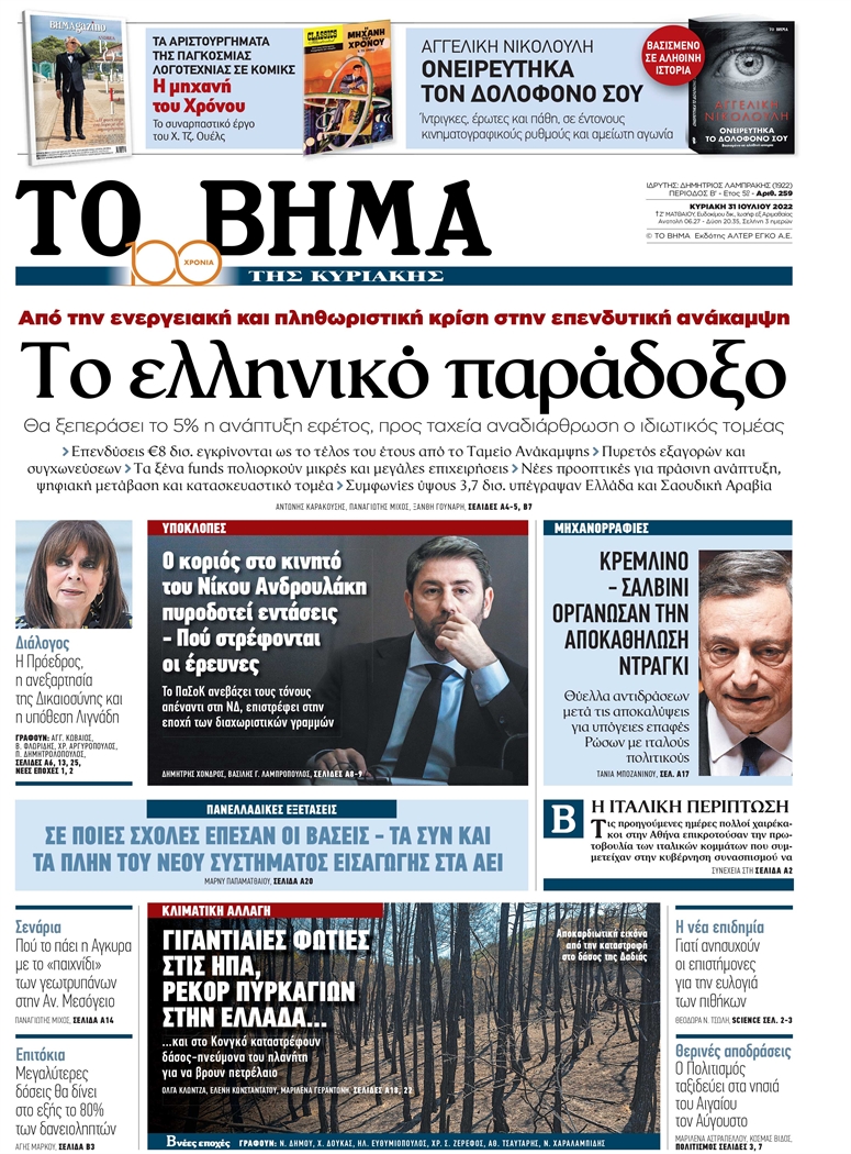 Τι θα διαβάσετε στο ΒΗΜΑ που κυκλοφορεί σήμερα Κυριακή μαζί με τον «Φ»: