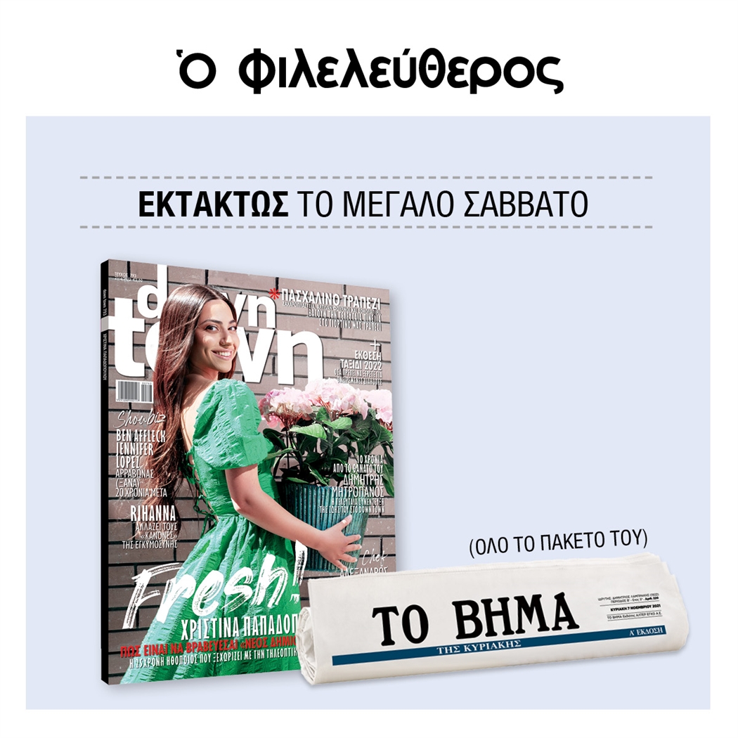 Μη χάσετε αυτή την Κυριακή, 10 Απριλίου, στην Έκδοση Συσκευασίας του Φιλελευθέρου μαζί με «Το Βήμα» και το «Down Town