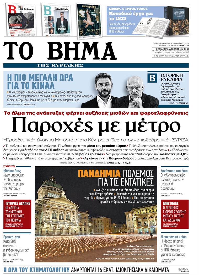 Τι θα διαβάσετε στο ΒΗΜΑ που κυκλοφορεί σήμερα μαζί με τον «Φ»: