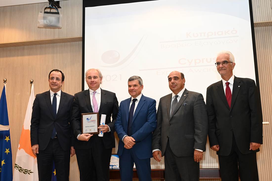 Το Πανεπιστήμιο Νεάπολις Πάφος τιμήθηκε με το Γενικό Βραβείο Υπηρεσιών στα πλαίσια του Κυπριακού Βραβείου Εξαγωγών 2021.