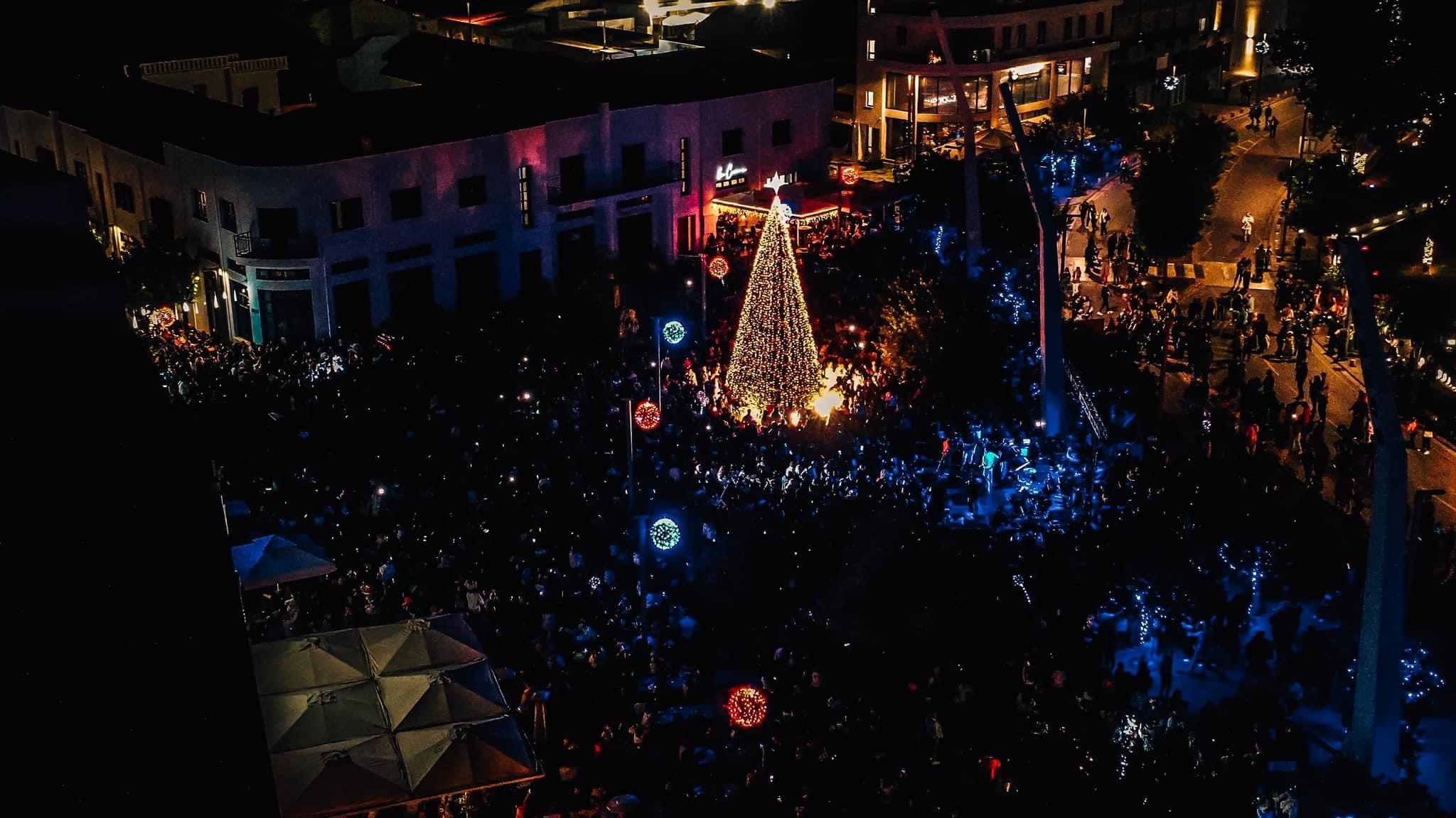 Το ύψους 12 μέτρων δέντρο, με τα συνολικά 17 χιλιάδες λαμπάκια και εκατοντάδες κόκκινες μπάλες, άναψε χθες βράδυ στην κεντρική Πλατεία Κέννεντυ, ενώπιον εκατοντάδων πολιτών που συνέρρευσαν στο κέντρο για την φωταγώγηση, αλλά και την συναυλία του συγκροτήματος Onirama που έδωσαν ένα εορταστικό τόνο στο βράδυ της Κυριακής.