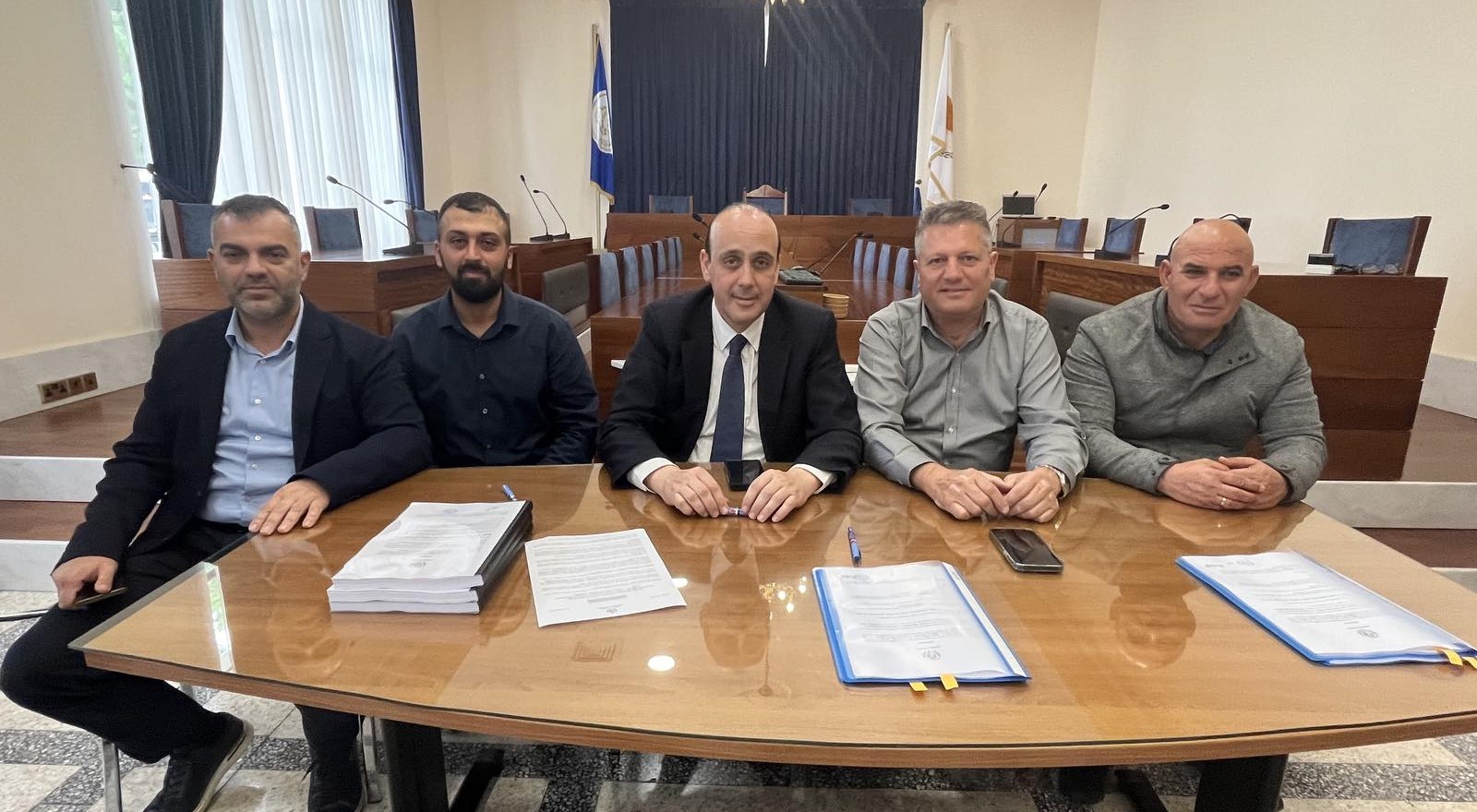 Στο Δημοτικό Μέγαρο Πάφου υπογράφτηκαν σήμερα οι συμβάσεις που αφορούν τους τρείς διαγωνισμούς με αντικείμενο τις εργασίες συντήρησης του γηπέδου Μουττάλου. Το έργο ανέλαβε και χρηματοδοτεί εξ ολοκλήρου ο Δήμος Πάφου. Τις συμβάσεις υπέγραψε εκ μέρους του Δήμου ο Δήμαρχος Πάφου, Φαίδωνας Φαίδωνος και οι εκπρόσωποι των αναδόχων εταιρειών.