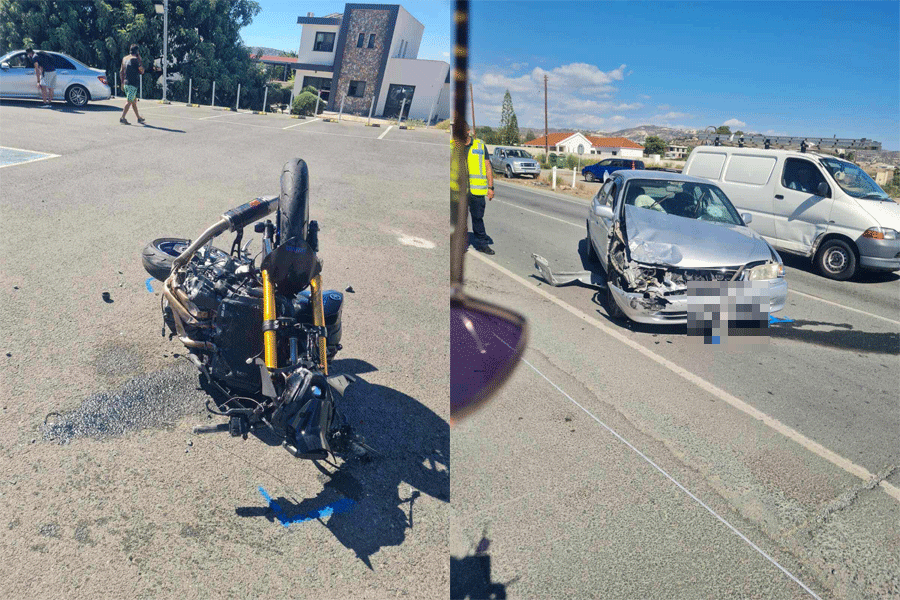Σύμφωνα με πληροφορίες από την Αστυνομία, ο οδηγός της μοτοσικλέτας κινείτο προς βόρεια κατεύθυνση και ανακόπηκε η πορεία του από αυτοκίνητο με νότια κατεύθυνση που προσπαθούσε να σταθμεύσει σε κατάστημα στα δεξιά.