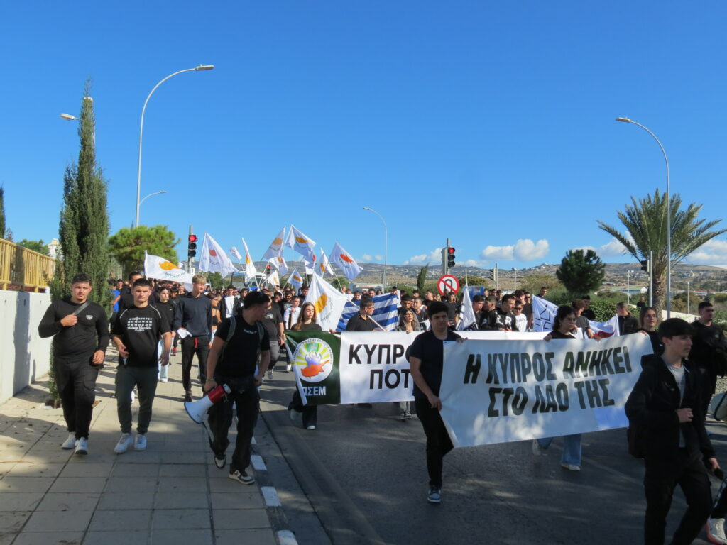 Η αντικατοχική εκδήλωση καταδίκης του ψευδοκράτους και τιμής και μνήμης του Πολυτεχνείου της ΕΣΕΜ Πάφου πραγματοποιήθηκε σήμερα με πολύ μεγάλη και δυναμική συμμετοχή από μαθητές όλων των σχολείων της Πάφου.