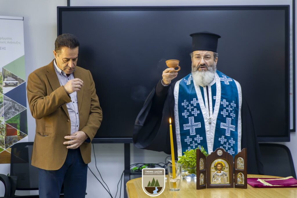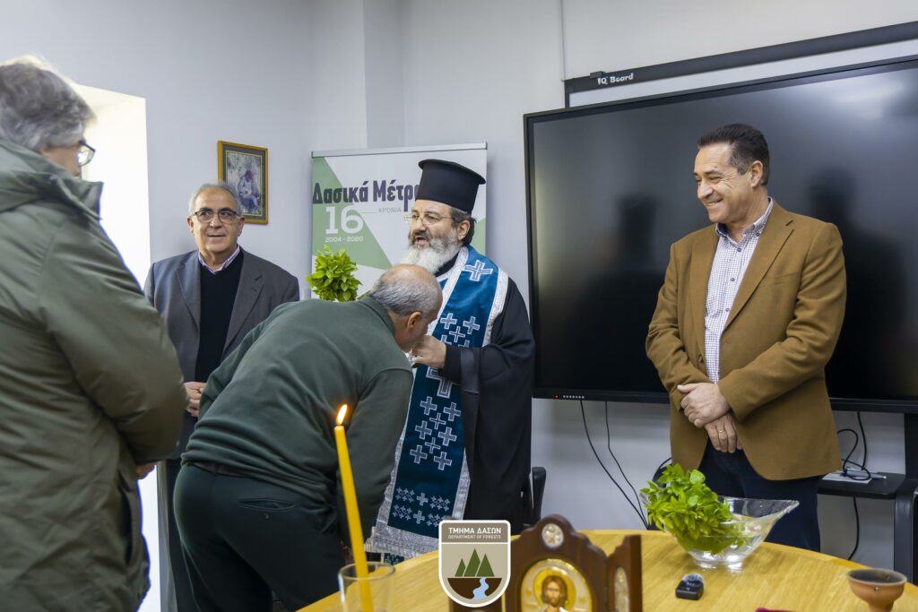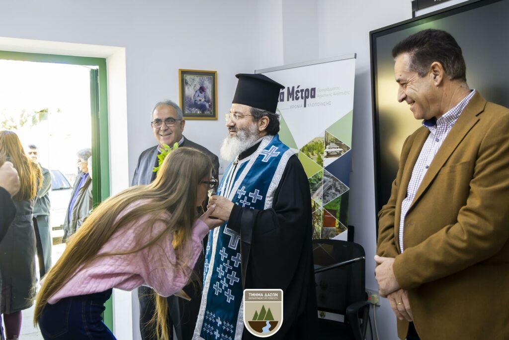 Η τελετή πραγματοποιήθηκε σε κλίμα θρησκευτικής κατάνυξης, παρουσία του προσωπικού των κεντρικών υπηρεσιών του Τμήματος. Στη σύντομη ομιλία του, ο Θεοφιλέστατος αναφέρθηκε στη σημασία της προστασίας των δασών, υπογραμμίζοντας παράλληλα τον κοινωνικό ρόλο και την προσφορά του Τμήματος Δασών, ενώ ευχήθηκε καλή δύναμη στο προσωπικό για το έργο που επιτελεί.