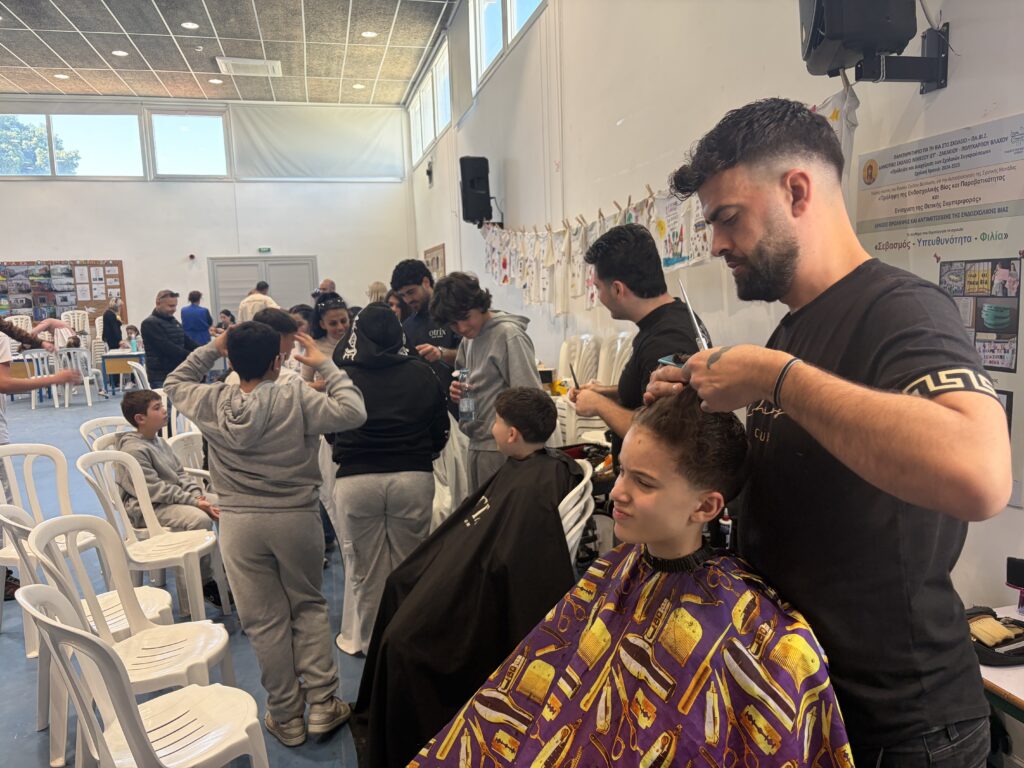 Παράλληλα, μαθητές και μαθήτριες είχαν την ευκαιρία να κουρευτούν ή να χτενιστούν από επαγγελματίες κομμωτές και κομμώτριες, οι οποίοι προσέφεραν εθελοντικά τις υπηρεσίες τους. Τα έσοδα από τη συγκεκριμένη δράση θα διατεθούν για την οικονομική ενίσχυση οικογένειας που βρίσκεται στο εξωτερικό, όπου παιδί της οικογένειας υποβάλλεται σε θεραπεία.