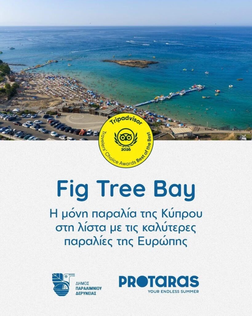 Σε ανακοίνωσή του ο Δήμος Παραλιμνίου – Δερύνειας εκφράζει την ιδιαίτερη ικανοποίησή του για τη σημαντική διεθνή διάκριση της παραλίας Fig Tree Bay στα ετήσια βραβεία Travellers’ Choice της ταξιδιωτικής πλατφόρμας Tripadvisor.