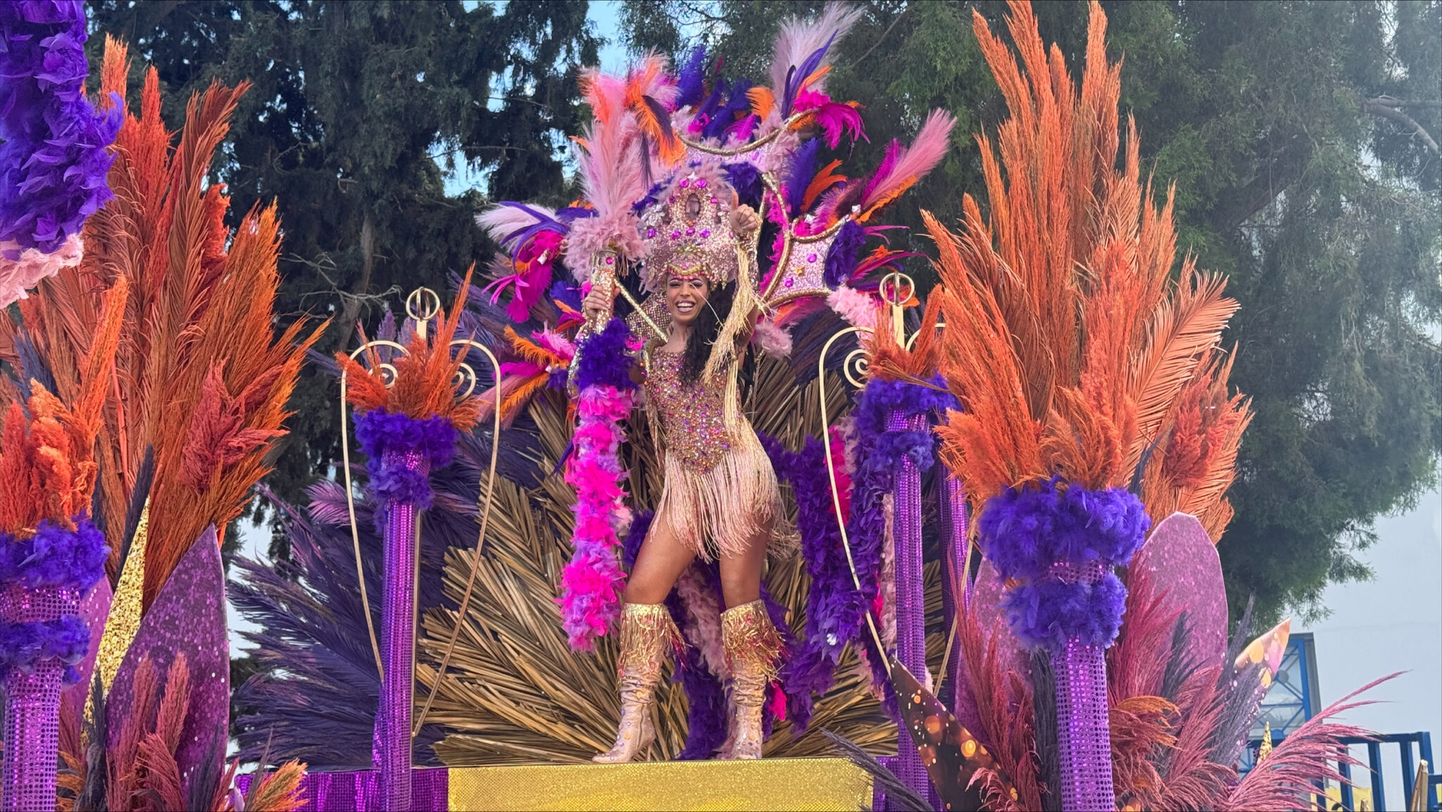 Με το άρμα της εντυπωσιακής Βασίλισσας του Καρναβαλιού Αμμοχώστου, Αδαμαντίνης Κοσμά ξεκίνησε και συνεχίζεται αυτή την ώρα η μεγάλη Καρναβαλίστικη παρέλαση Αμμοχώστου στο Παραλίμνι.