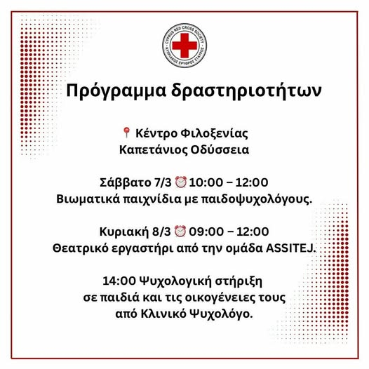 Με αυτό το πνεύμα, ο Κυπριακός Ερυθρός Σταυρός διοργανώνει ένα διήμερο δραστηριοτήτων για τα παιδιά των οικογενειών από το Ακρωτήρι, που βρίσκονται προσωρινά μακριά από τα σπίτια τους λόγω της κατάστασης.