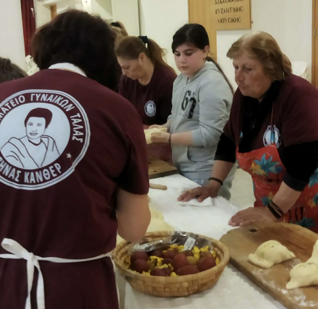 Τα παραδοσιακά εδέσματα της μεγάλης γιορτής και το βάψιμο των πασχαλινών αυγών συνεχίσθηκαν μέχρι το μεσημέρι, με τα παιδιά του Δημοτικού Σχολείου Τάλας να παρακολουθούν με έκδηλο ενδιαφέρον και έντονη συμμετοχή στις ετοιμασίες, υπό την καθοδήγηση των γυναικών του σωματείου.