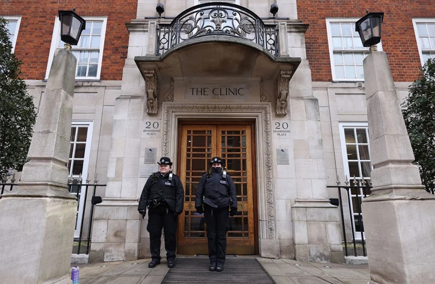 Η βασίλισσα εθεάθη μέσα σε ένα πολυτελές μαύρο αυτοκίνητο καθ’ οδόν προς το νοσοκομείο. Ο Κάρολος εισήχθη την Παρασκευή στο νοσοκομείο και πριν υποβληθεί στην επέμβαση επισκέφθηκε τη νύφη του, την πριγκίπισσα της Ουαλίας, η οποία βρίσκεται επίσης στο νοσοκομείο και αναρρώνει από επιτυχημένη εγχείρηση στην κοιλιακή χώρα.