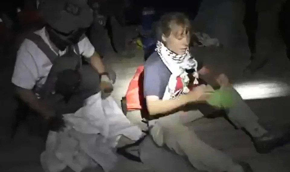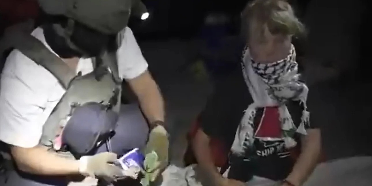 Σε πλάνα που αναρτήθηκαν στο Χ από το Υπουργείο Εξωτερικών του Ισραήλ, η Σουηδή ακτιβίστρια Γκρέτα Τούνμπεργκ φαίνεται ανάμεσα σε όσους κρατούνται από τις αρχές.