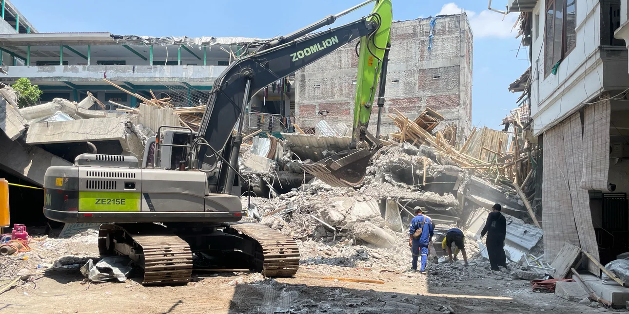 Μέρος του οικοτροφείου του ισλαμικού ιεροδιδασκαλείου αλ Χόζινι, στο Σιντοαρτζό, κοντά στη μεγάλη πόλη Σουραμπάγια, στην ανατολική Ιάβα, πολυώροφου κτιρίου, κατέρρευσε ξαφνικά την περασμένη Δευτέρα, καθώς σπουδαστές συγκεντρώνονταν για τη μεσημεριανή προσευχή.