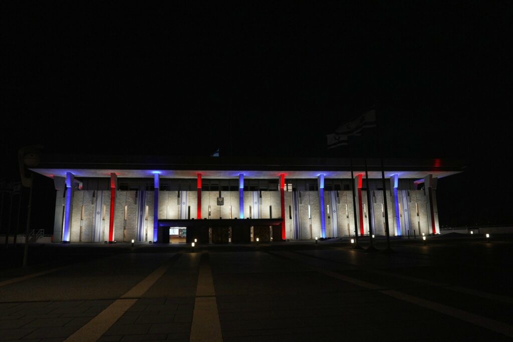 Ήδη, το κτίριο της Κνέσετ στην Ιερουσαλήμ φωτίστηκε με κόκκινο, λευκό και μπλε χρώμα προς τιμήν της αναμενόμενης επίσκεψης του Αμερικανού προέδρου.
