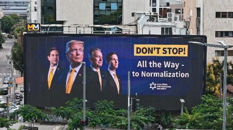 Τεράστιες διαφημιστικές αφίσες με συνθήματα υπέρ της ειρήνης και της περιφερειακής εξομάλυνσης εμφανίστηκαν την Κυριακή σε κεντρικά σημεία του Τελ Αβίβ και της Ιερουσαλήμ, μία ημέρα πριν από την επίσκεψη του Αμερικανού προέδρου Ντόναλντ Τραμπ στο Ισραήλ. Οι αφίσες προκάλεσαν αίσθηση όχι μόνο για τα πρόσωπα που απεικονίζουν, αλλά κυρίως για εκείνο που λείπει — τον Ισραηλινό πρωθυπουργό Μπενιαμίν Νετανιάχου.