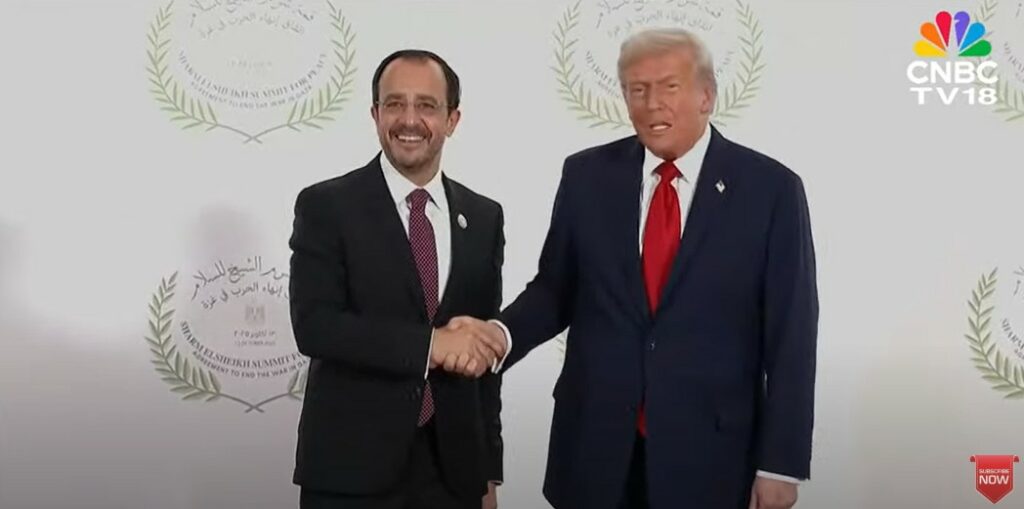 18:40 – Η στιγμή της χειραψίας του Νίκου Χριστοδουλίδη με τον Ντόναλντ Τραμπ