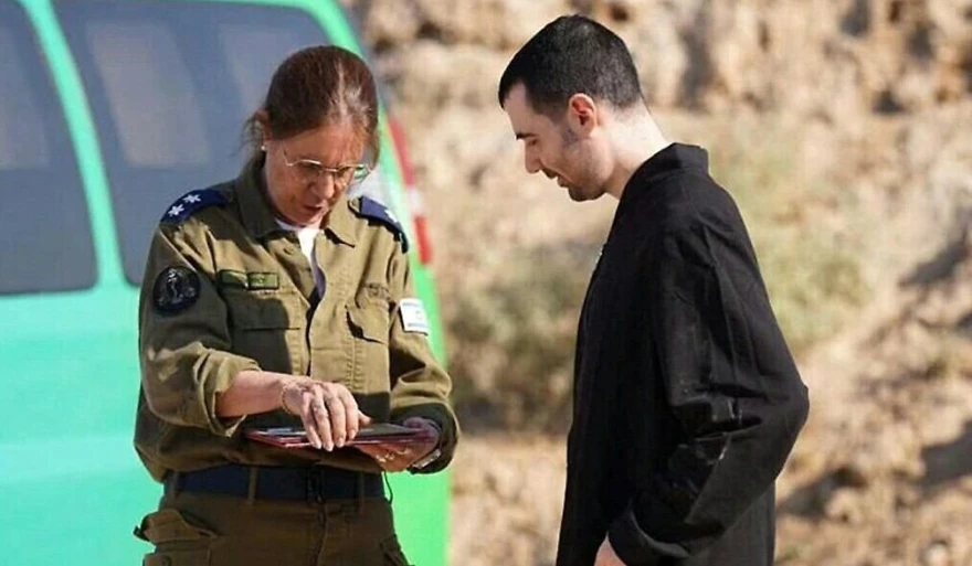 Φαίνεται αισθητά αδυνατισμένος και φοράει παραστρατιωτική στολή που η Χαμάς ανάγκασε και άλλους απελευθερωμένους ομήρους να φορούν κατά την απελευθέρωσή τους.