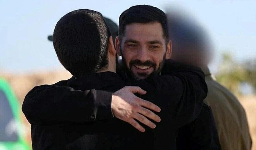 Αγκαλιά με τη σύζυγό του Λισέι απαθανατίστηκε ο Μιράν λίγα λεπτά μετά την απελευθέρωσή του από τη Χαμάς.