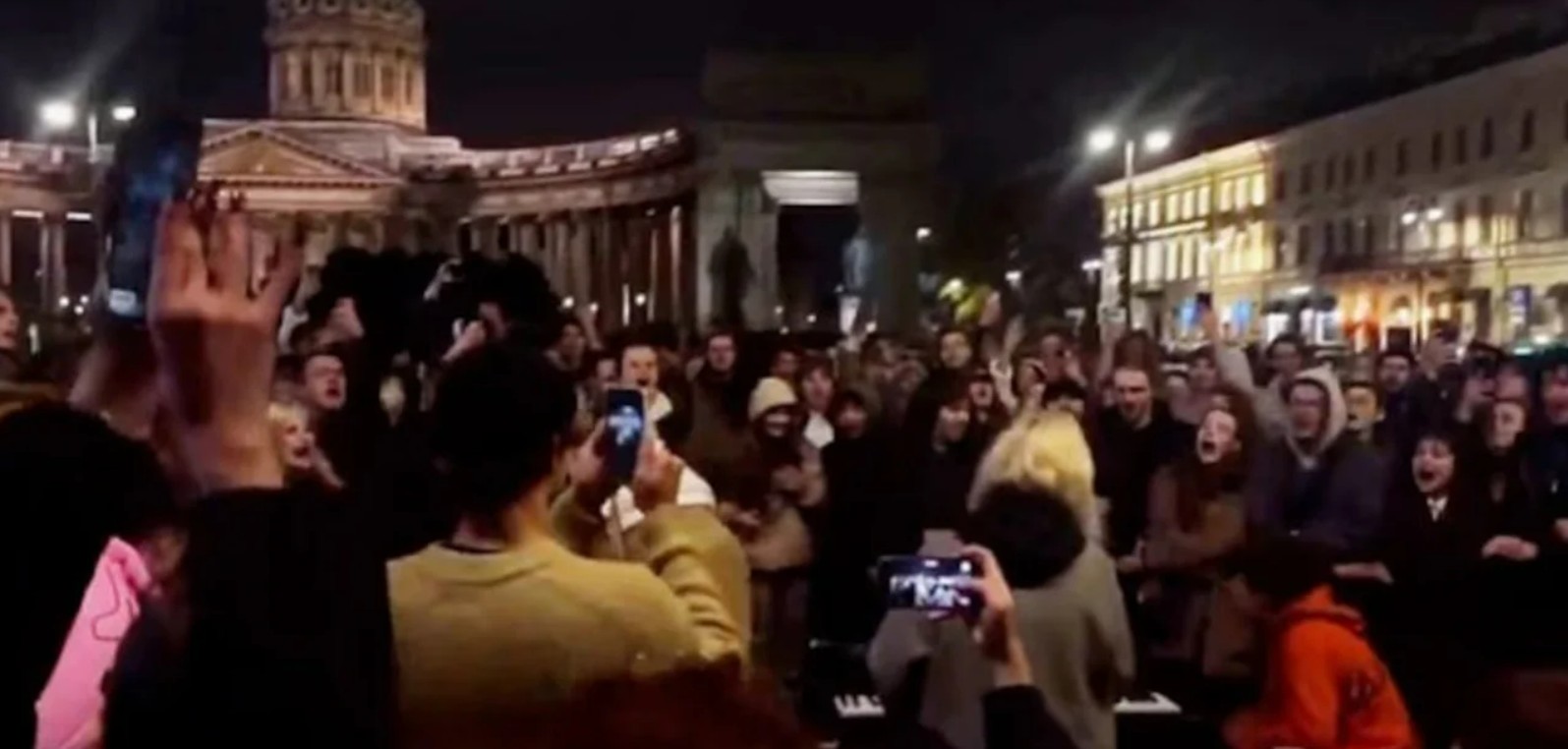 Ένα μεγάλο πλήθος πέρασε τη βραδιά της 13η ς Οκτωβρίου τραγουδώντας απαγορευμένα αντιπολεμικά τραγούδια μαζί με μουσικούς του δρόμου στην πλατεία Καζάνσκαγια της γενέτειρας του Πούτιν.