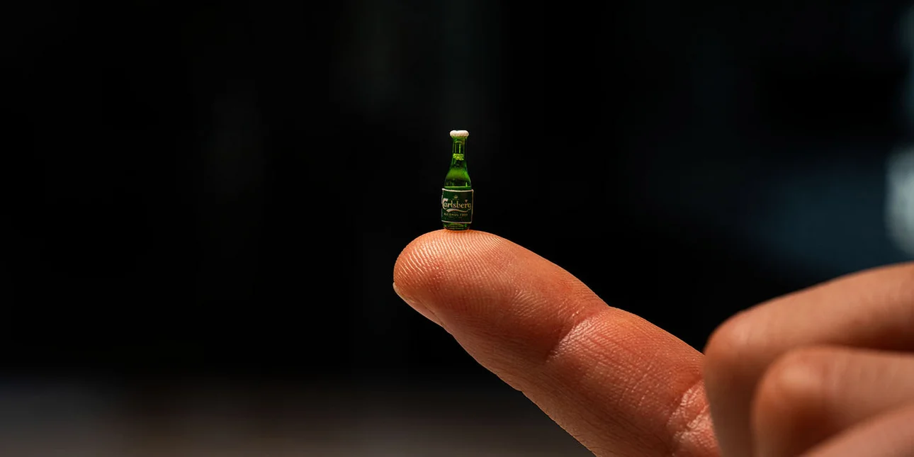 Η Carlsberg δημιούργησε ένα μπουκάλι μεγάλο όσο ένας κόκκος ρυζιού και με 0,005 εκατοστόλιτρα μπίρας, στο εσωτερικό, χωρίς αλκοόλ.