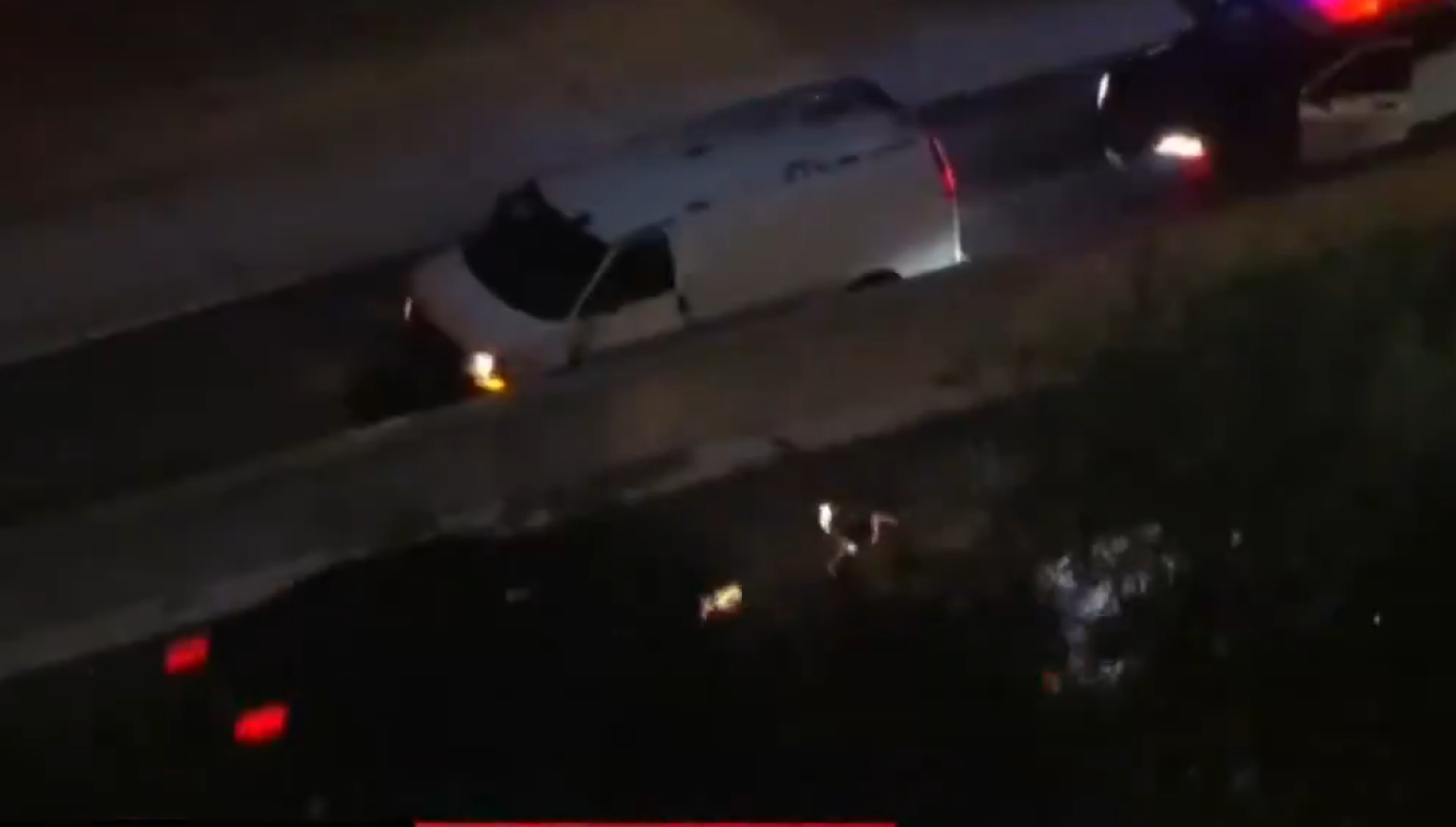 Στο βίντεο του CBS Los Angeles φαίνεται ο άνδρας, του οποίου τα στοιχεία δεν έχουν γίνει γνωστά, να εγκαταλείπει το λευκό φορτηγάκι που είχε κλέψει νωρίτερα τη Δευτέρα στην Τσάιναταουν, ενώ το όχημα βρισκόταν σε αυτοκινητόδρομο.