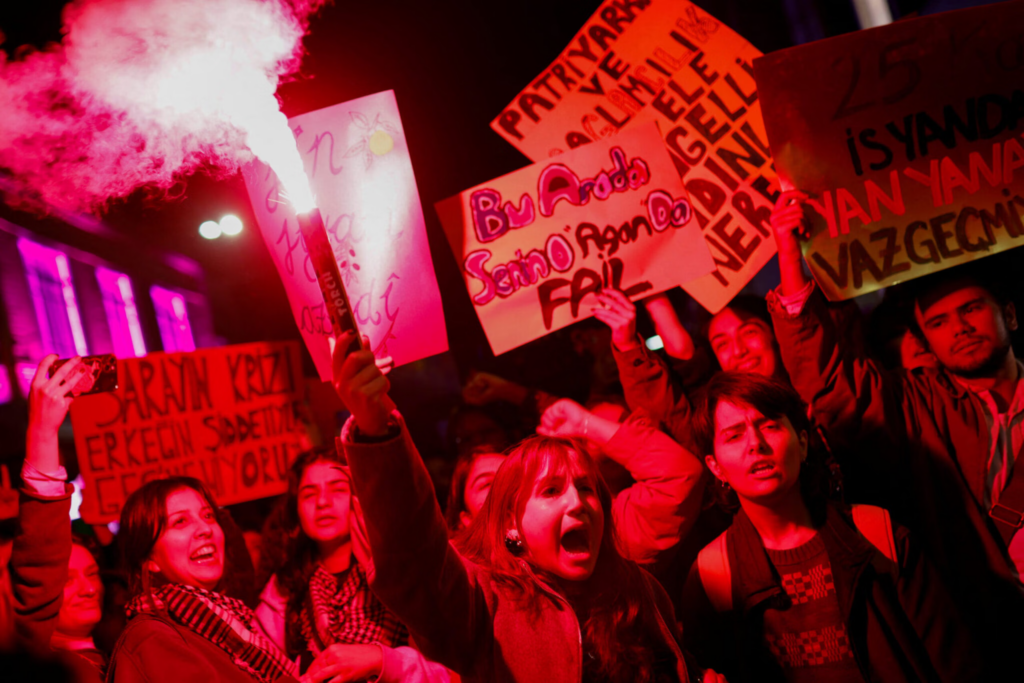 Πλήθος γυναικών και ακτιβίστριων της LGBTQ+ κοινότητας, διαδήλωσαν για την Παγκόσμια Ημέρα για την Εξάλειψη της Βίας κατά των Γυναικών, στο κέντρο της Κωνσταντινούπολης, με αποτέλεσμα να προκληθεί ένταση με τις αστυνομικές δυνάμεις.