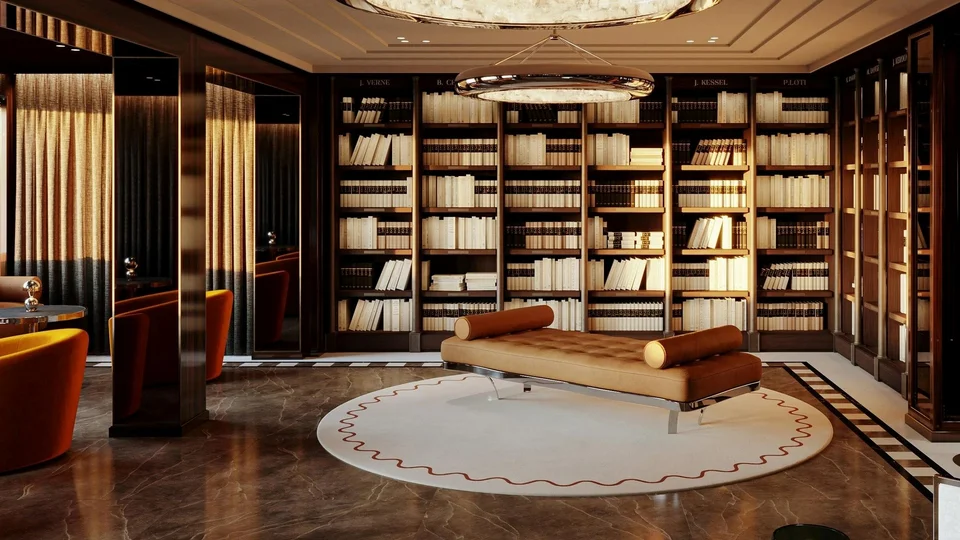 Παράλληλα, υπάρχει χώρος για όποιον θέλει να απολαύσει μια κλασική ταινία, ενώ οι λάτρεις της ανάγνωσης μπορούν να ηρεμήσουν στην πολυτελή βιβλιοθήκη.