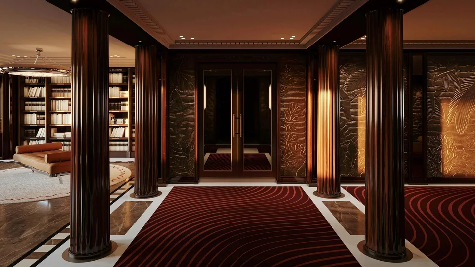 Αρχίζοντας από τα σαλόνια, που είναι εμπνευσμένα από τα ιστορικά βαγόνια-σαλόνια, τα οκτώ μπαρ, τα πέντε εστιατόρια και τις 54 σουίτες, μερικές από τις οποίες έχουν εμβαδόν έως 230 τετραγωνικά και διαθέτουν γυμναστήριο και τζακούζι, η απόλυτη άνεση συνδυάζεται με την τέχνη, καθώς κυριαρχούν το κεχριμπαρένιο ξύλο, το βελούδινο δέρμα και το γυαλισμένο μάρμαρο.