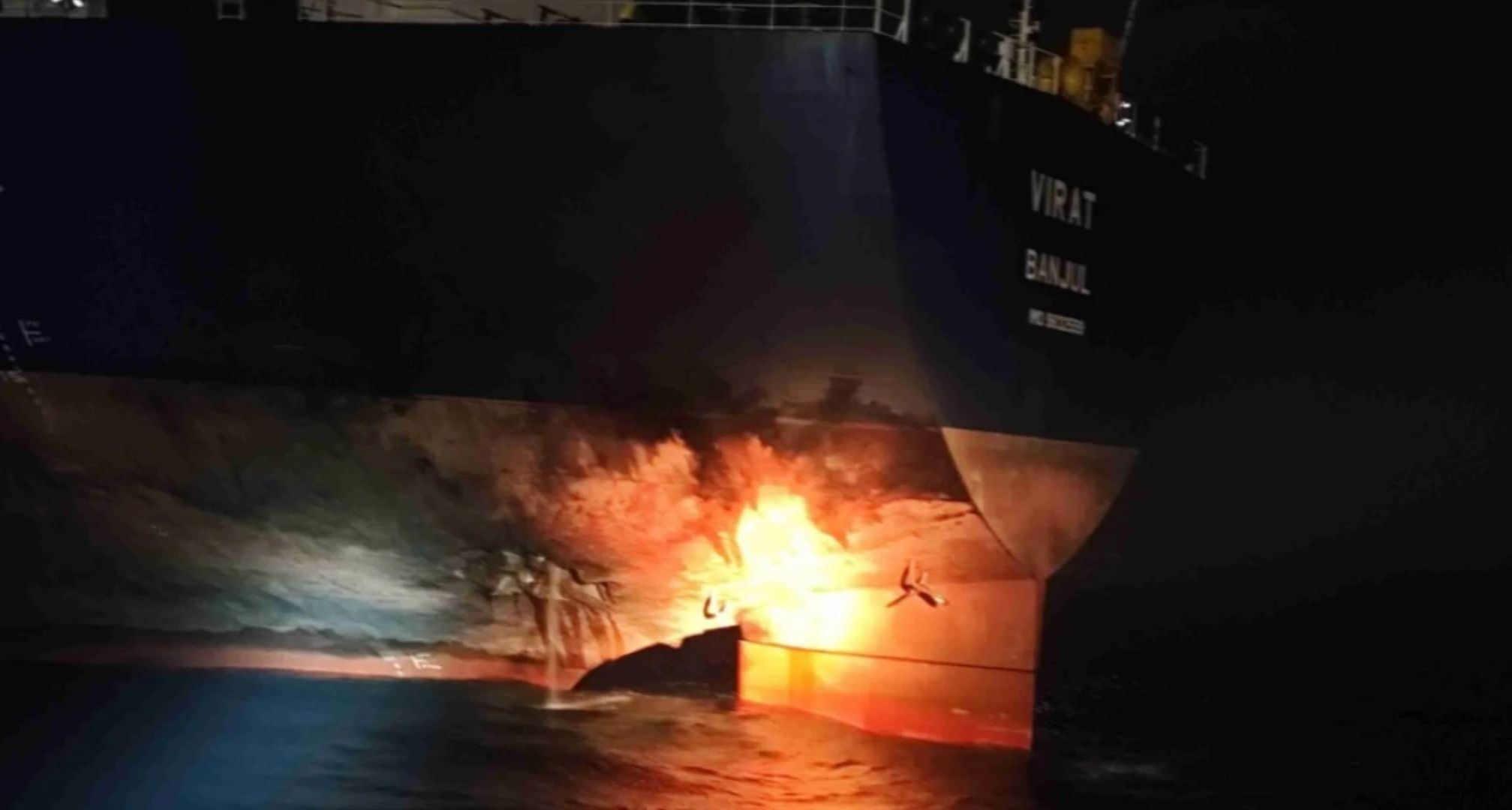 Το πλοίο, που φέρει σημαία Γκάμπιας και θεωρείται ότι ανήκει στον ρωσικό σκιώδη στόλο, «υπέστη ελαφρές ζημιές στη δεξιά πλευρά, πάνω από την ίσαλο γραμμή», διευκρίνισε το υπουργείο, υπογραμμίζοντας πως «δεν έχει εκδηλωθεί πυρκαγιά πάνω στο πλοίο και όλα τα μέλη του πληρώματος είναι καλά στην υγεία τους».