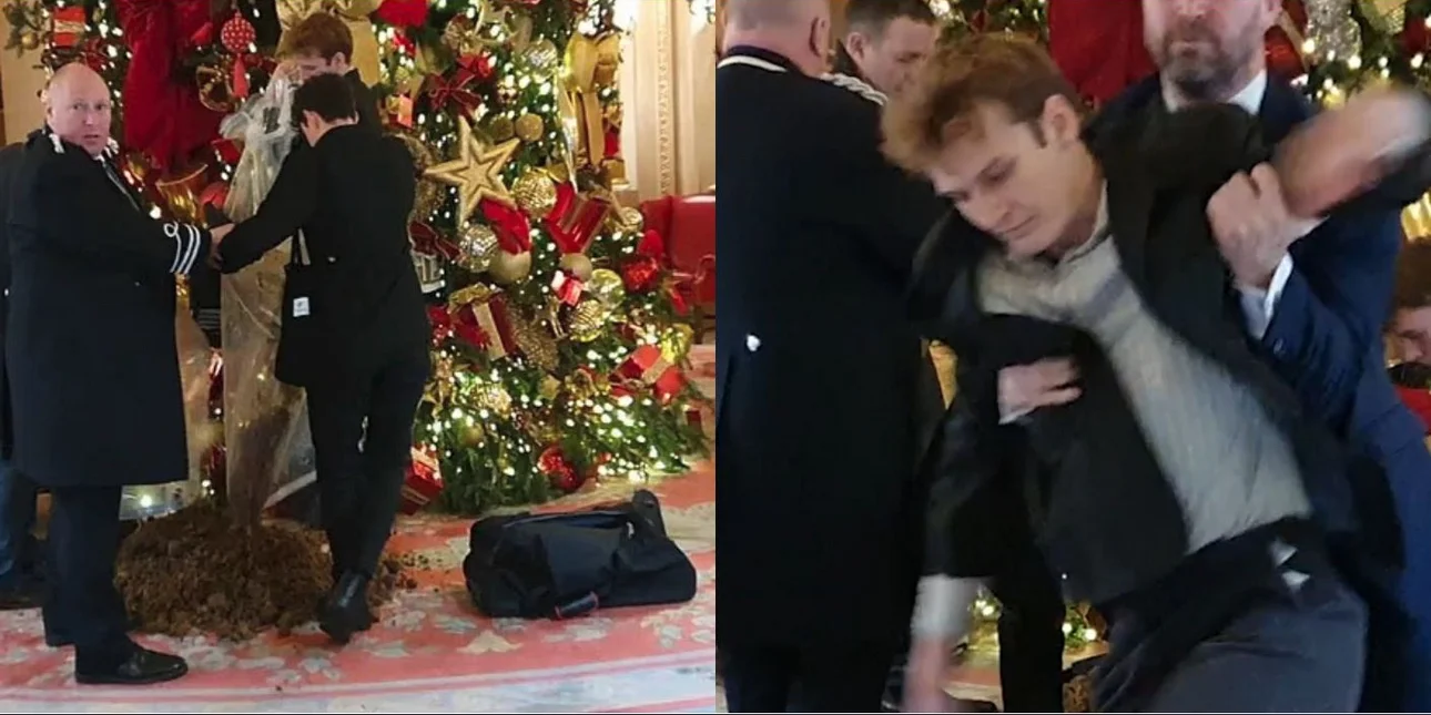 Οι τρεις ακτιβιστές της ομάδας «Take Back Power» άδειασαν σακούλες με κοπριά αλόγων δίπλα στο εντυπωσιακό, ύψους περίπου οκτώ μέτρων, χριστουγεννιάτικο δέντρο στο λόμπι του ξενοδοχείου, που προσελκύει πελάτες με παχιά πορτοφόλια.